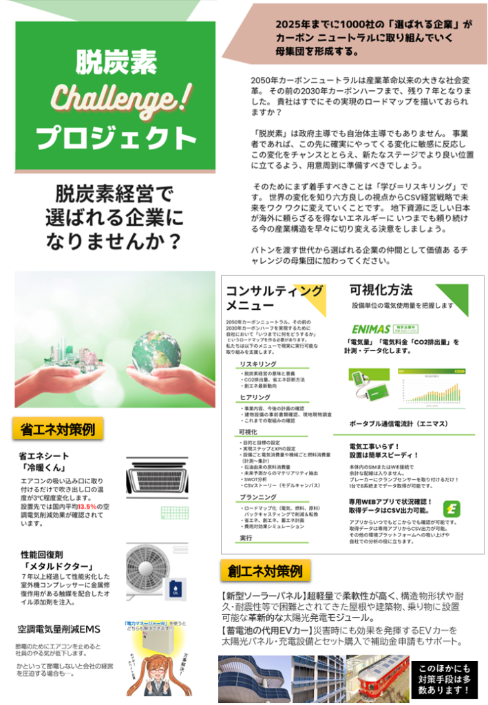 「脱炭素チャレンジ!」をプロジェクト化して多くの方のご賛同を